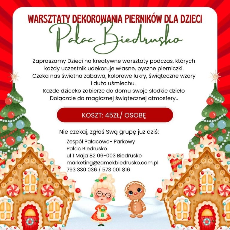 Zapraszamy na słodką świąteczną przygodę — Warsztaty Dekorowania Pierników w Pałacu Biedrusko! 🍪✨